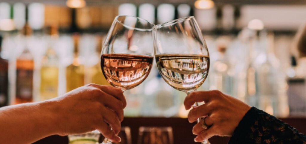 Teatteribaarissa nautitaan keväällä viineistä.