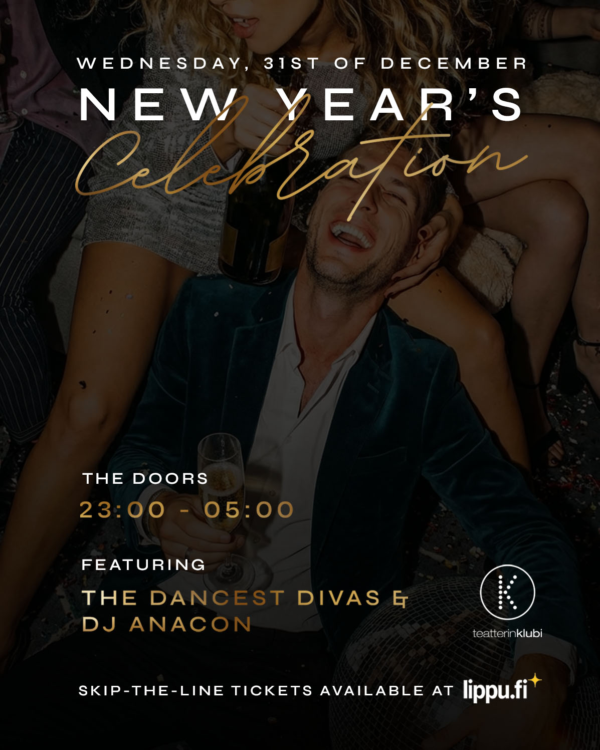 On the last night of the year, Teatteri Klubi transforms into a dazzling stage of celebration where glamour meets a spectacular party atmosphere.